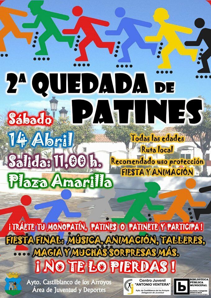 El cierre a esta programación lo pondrá el sábado 14 de abril, la 2ª Quedada de Patines con salida a las 11:00horas desde la Plaza Amarilla y regreso al mismo punto, donde una vez finalizado el recorrido se desarrollarán distintos talleres de animación y baile, a cargo de ALMADANCE y habrá un aperitivo para los participantes.