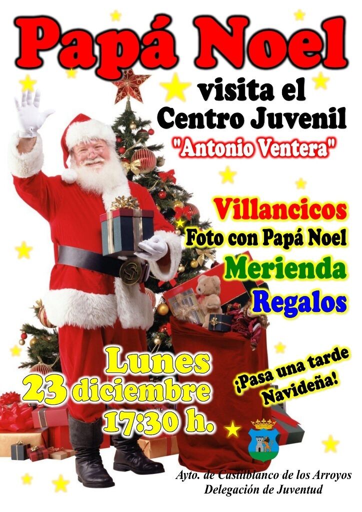 Papa Noel visitará Castilblanco el lunes día 23, a partir de las 17:30h, para recoger personalmente todas las cartas que los niños y niñas quieran depositar en el buzón que traerá al Centro Juvenil a cambio de un pequeño detalle.