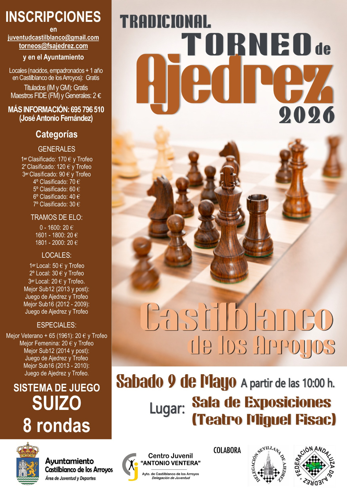 Ajedrez, que se celebrará el próximo 9 de mayo. Se trata de una cita ya consolidada que, edición tras edición, reúne a numerosos participantes no solo del municipio, sino de toda la provincia, mejorando cada año su nivel competitivo.