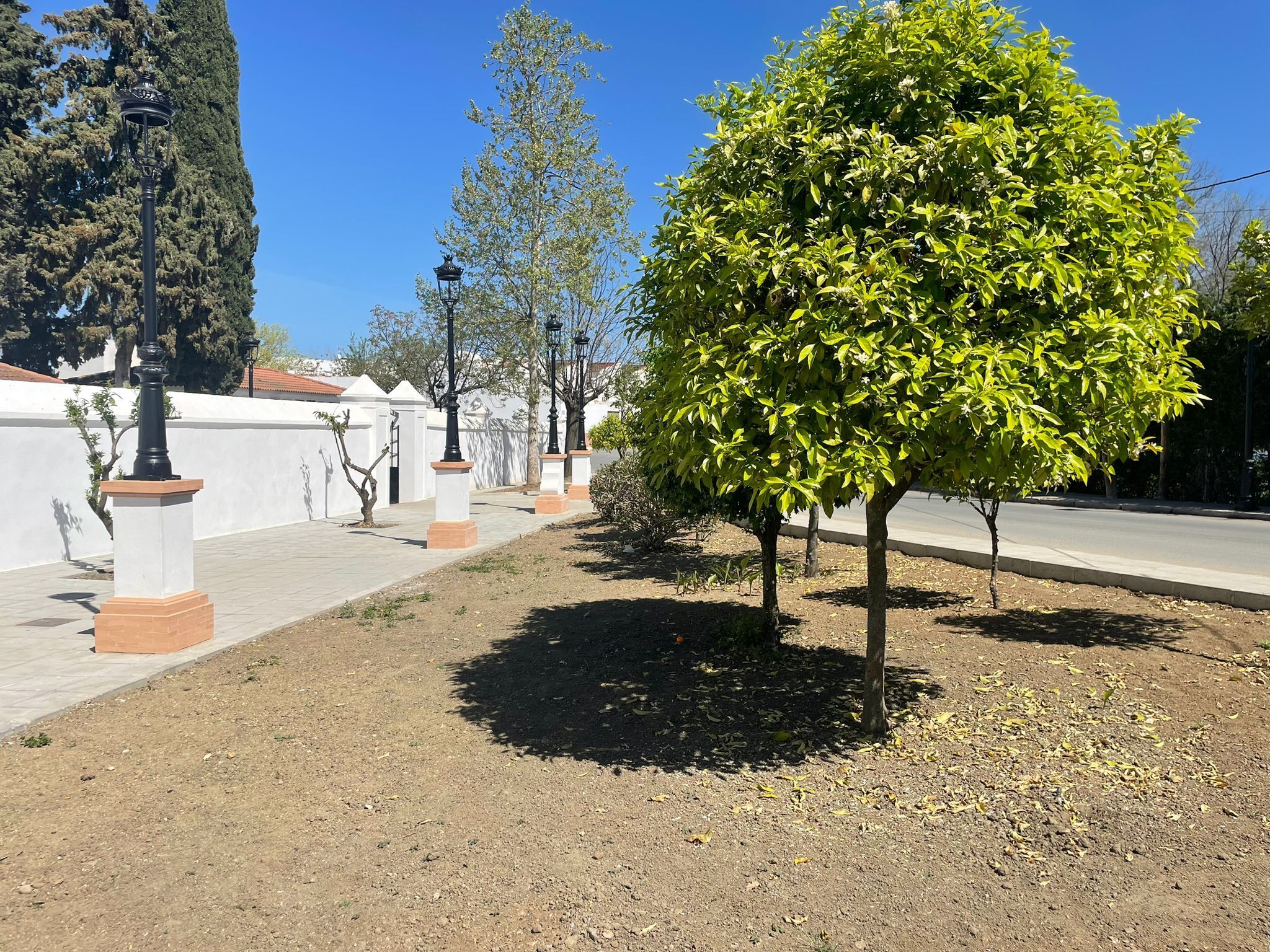 Entre las especies que se han plantado destacan naranjos, limoneros, moreras para las zonas más diáfanas y que precisen de una mayor sombra, olivos y rosales.