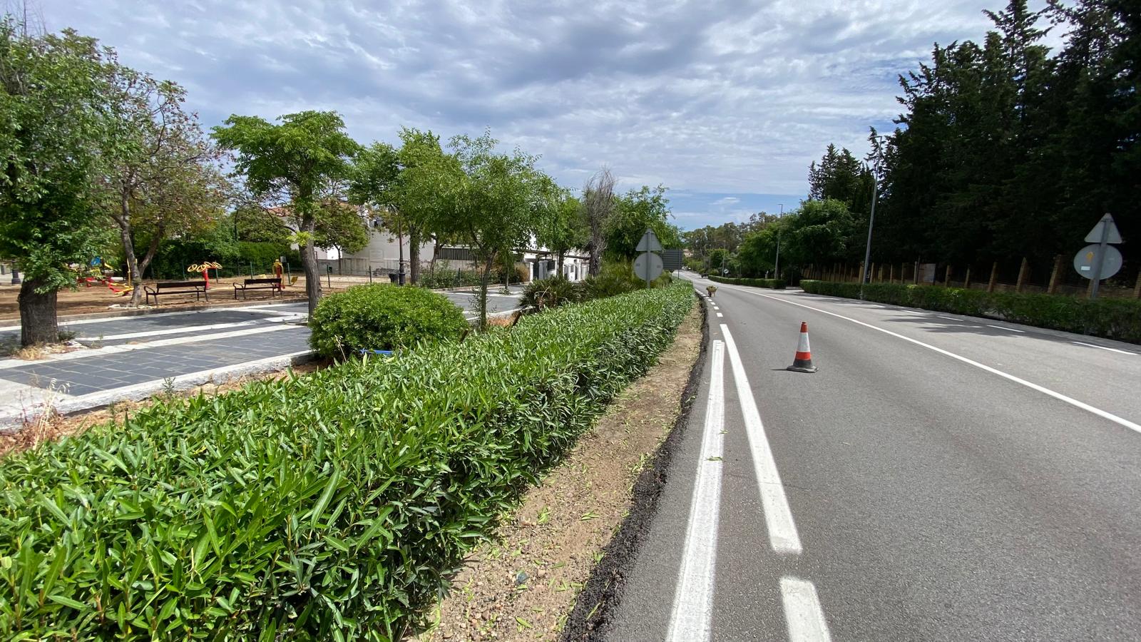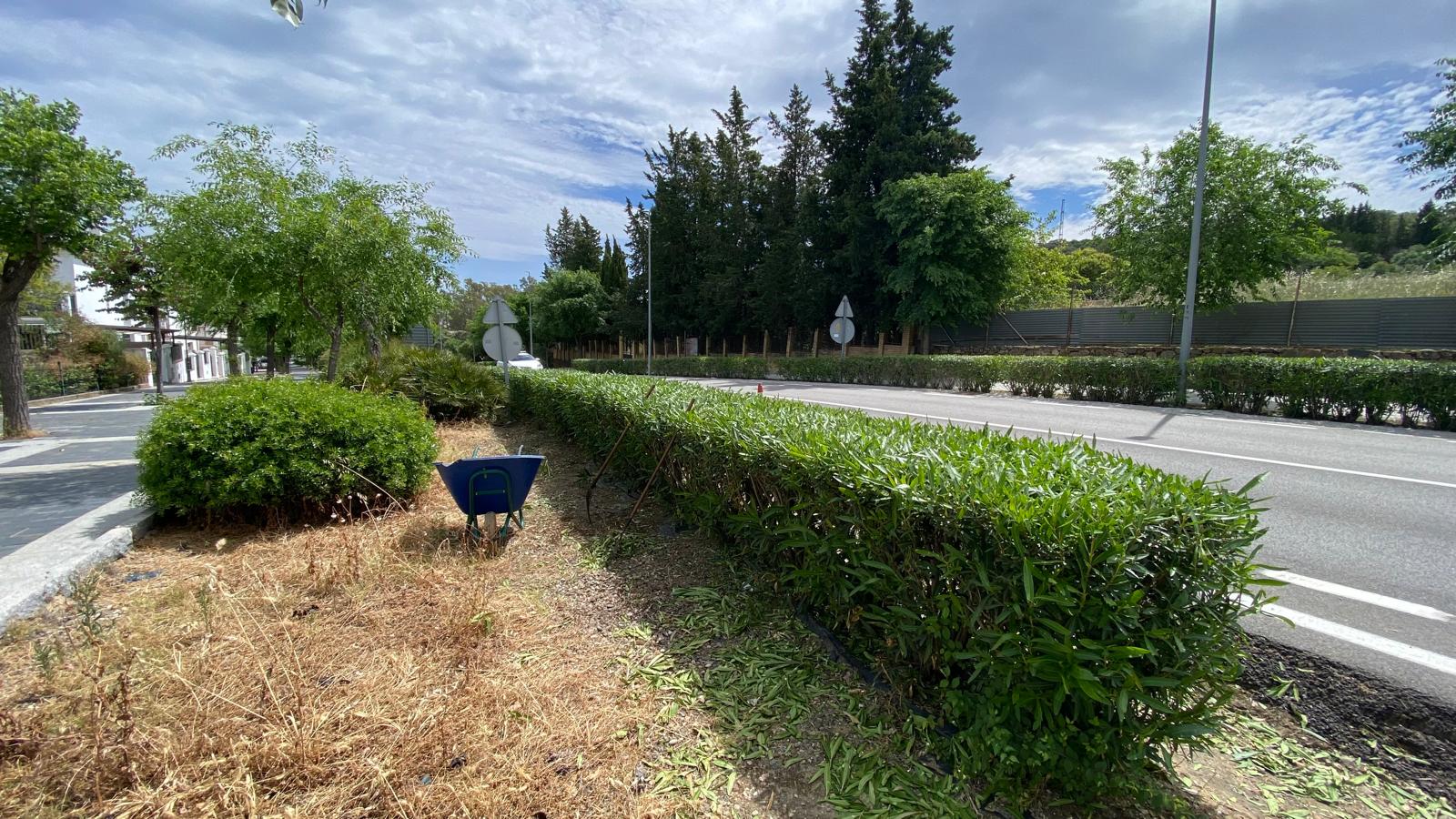 Ante el aumento de las altas temperaturas y tras las intensas lluvias registradas durante el pasado mes de marzo, la Concejalía de Parques y Jardines intensifica los trabajos de limpieza y desbroce en el casco urbano, incrementándose los trabajos en las zonas ajardinadas y accesos al casco urbano.
