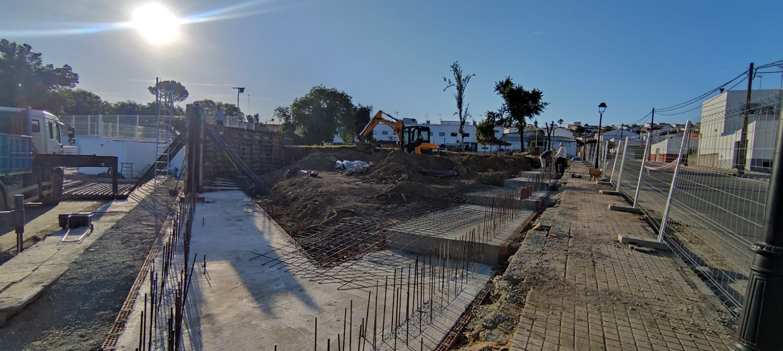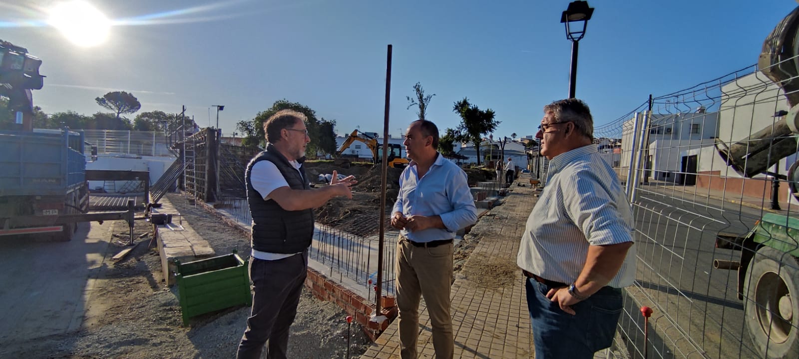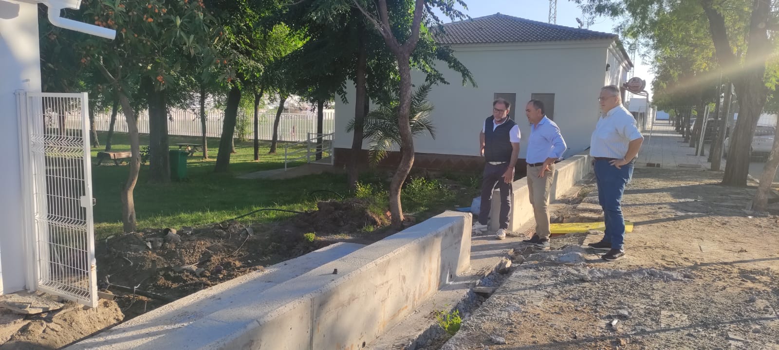 Durante la visita, han podido comprobar el desarrollo de los trabajos, entre los que destaca la sustitución del cerramiento perimetral de la Piscina, cuya base ya ha sido prácticamente finalizada.