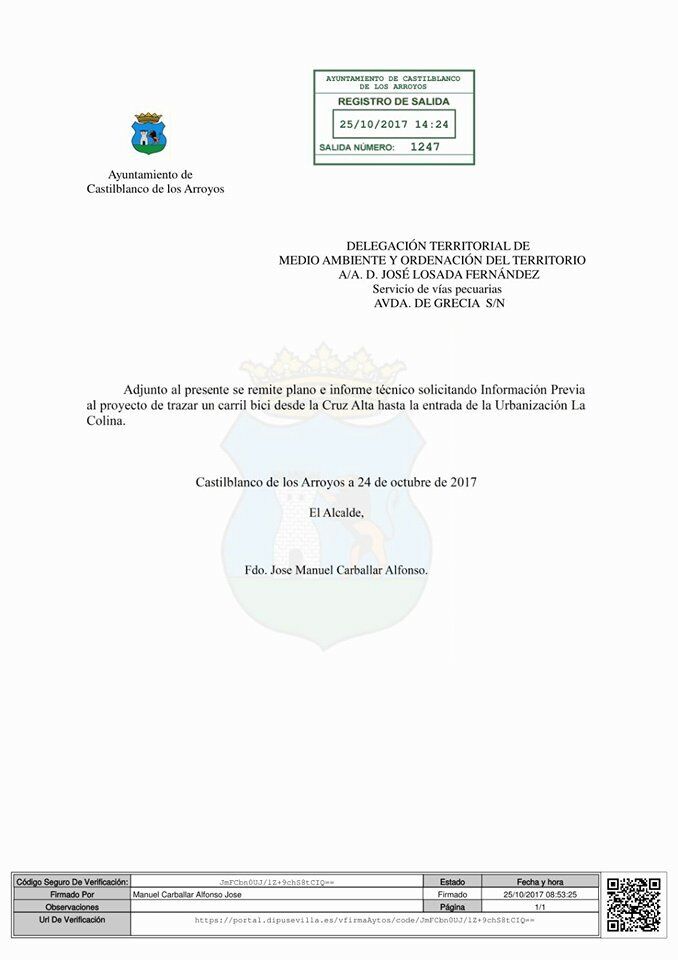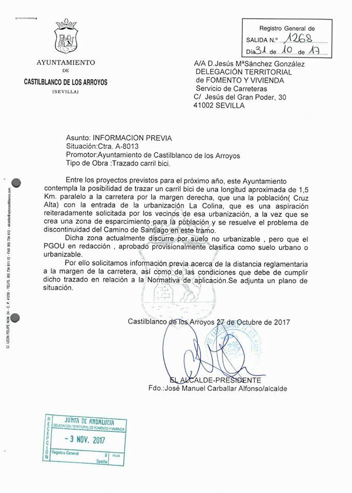 Atendiendo las peticiones vecinales y, en este caso, considerando la propuesta de los propietarios de la urbanización La Colina, el Ayuntamiento ha solicitado ante la Delegación de Fomento y Vivienda y también de Medio Ambiente, los estudios para la creación de un carril bici en el tramo que discurre entre la Cruz Alta y la entrada a La Colina.