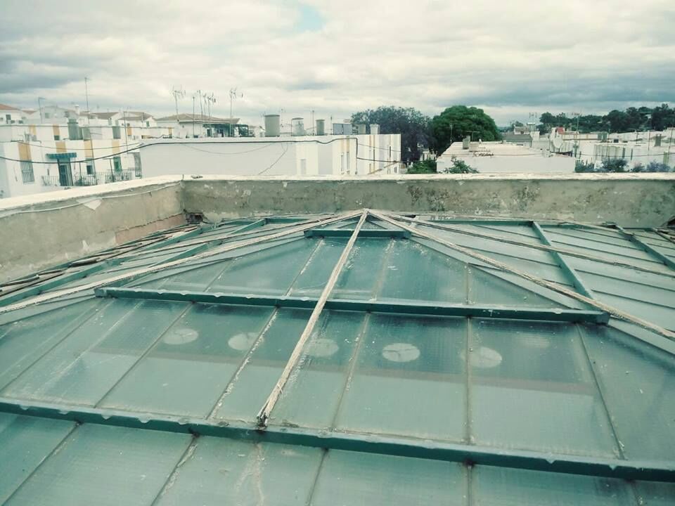 Concretamente se está procediendo al desmontaje de la montera de este espacio. También y como medida para evitar que en el futuro vuelvan a aparecer daños similares, en la azotea se instalará un canalón perimetral para proteger la entrada de agua al edificio, procediéndose a la sustitución del anterior, de plomo y principal causante de las filtraciones.