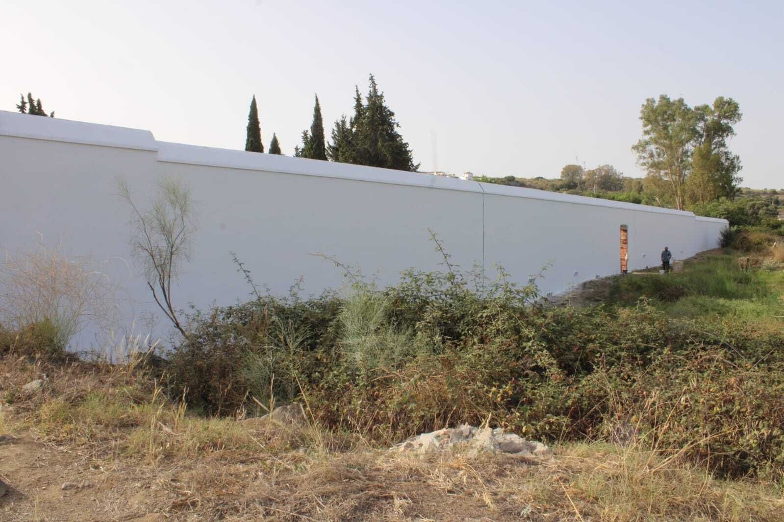 Para el cerramiento de estos terrenos, de más de 3.000 m2, el Ayuntamiento ha optado por la construcción de un muro y pilares, con una altura media de 2,50 m, y terminación a dos aguas, enfoscados y pintados en color blanco. Además, el proyecto también contempla la pavimentación del acceso a este recinto con asfalto.