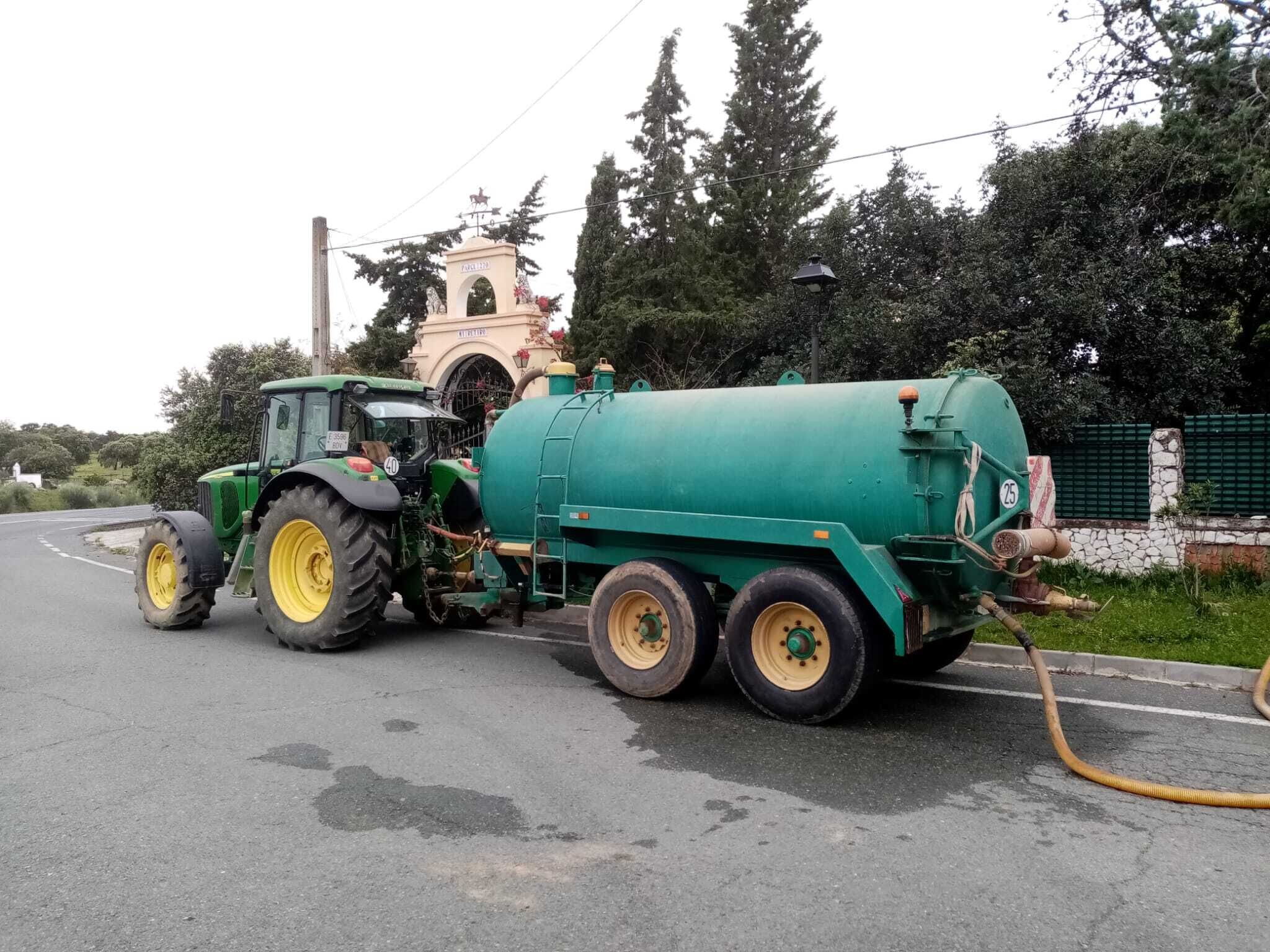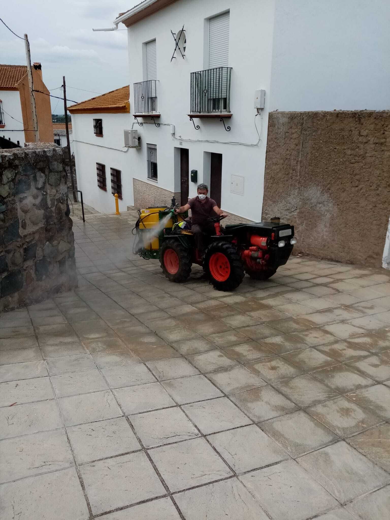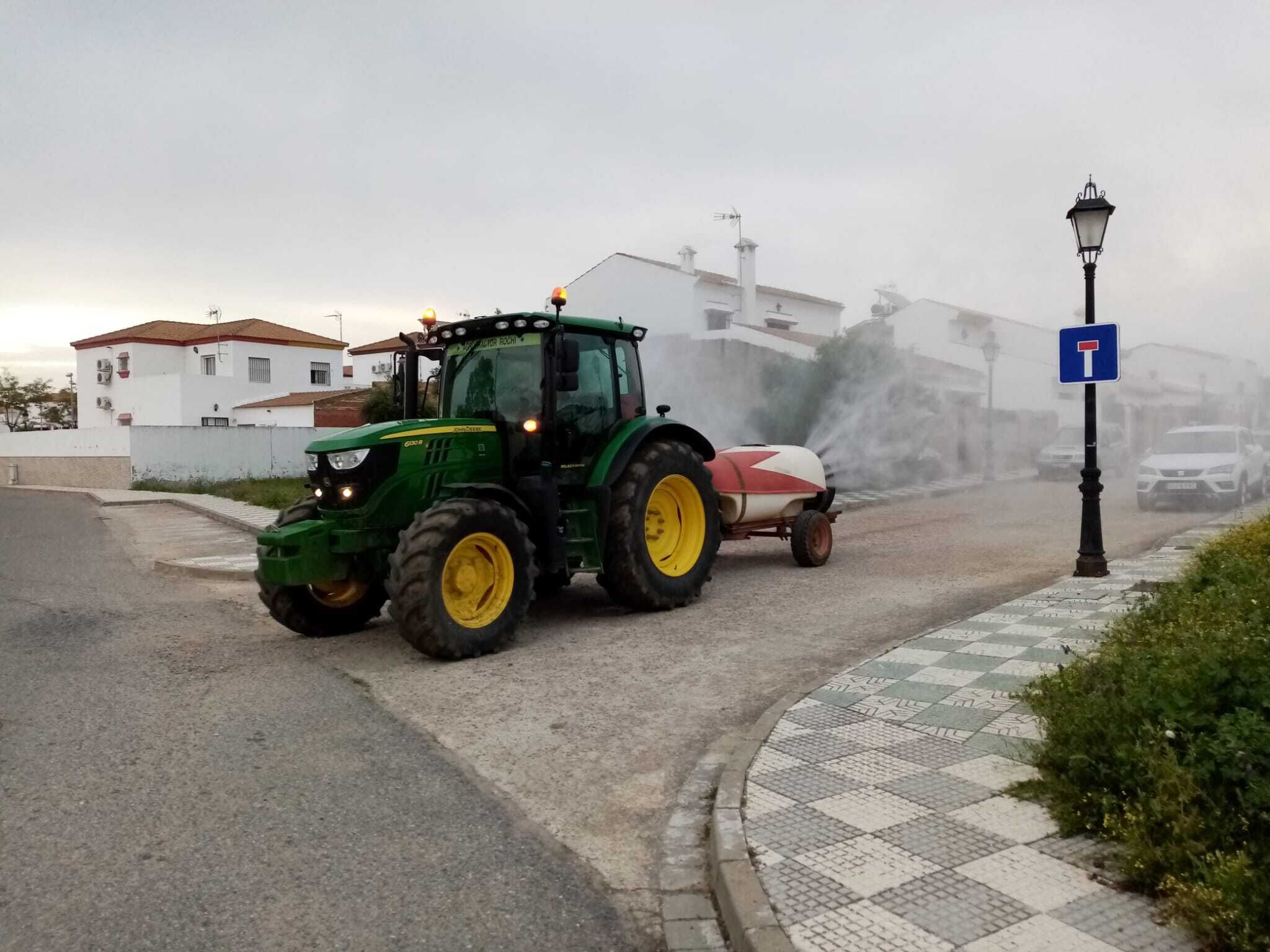 Desde que se decretara el estado de alarma, tres han sido las actuaciones que se han llevado a cabo con la colaboración del sector agrícola, reforzando así las tareas de limpieza que a diario se desarrollan en el mobiliario público, plazas y zonas de mayor paso vecinal por parte de los operarios municipales.