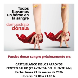 Donación de sangre el lunes 23 de marzo en el Centro de Salud