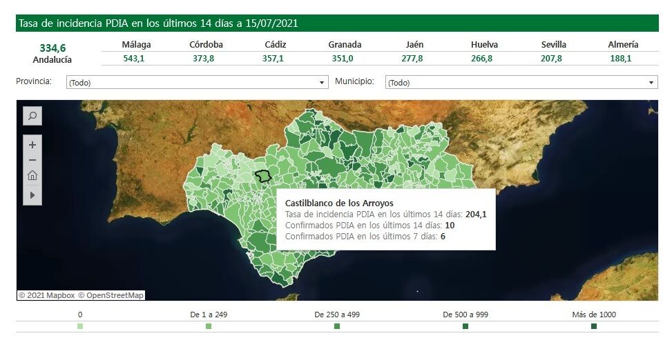 La quinta ola de contagios por Covid-19 también se hace notar a nivel local. Según la última actualización de datos por parte de la Consejería de Salud y Familias, nuestro pueblo que la pasada semana contabilizaba un total de 7 casos activos, registra este jueves 10 positivos, 6 de ellos diagnosticados en la última semana, lo que se traduce en una tasa acumulada de 204 casos por cada 100.000 habitantes. Una cifra muy similar a la de Sevilla y su provincia con 207 (Andalucía 334).