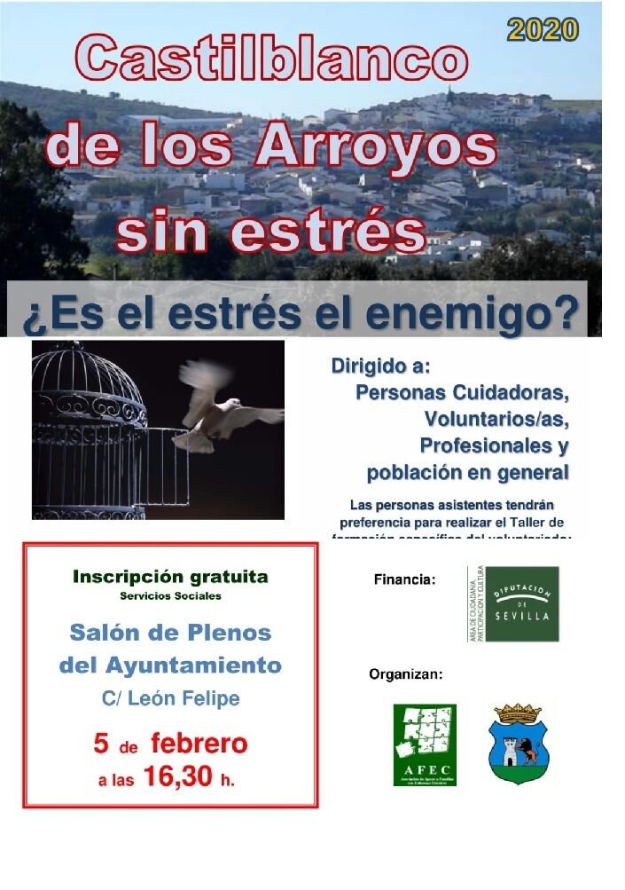 Bajo el slogan Castilblanco de los Arroyos sin estrés, el área de Salud se encuentra organizando en colaboración con la Diputación de Sevilla un curso sobre cómo gestionar el estrés y conseguir un mayor bienestar personal.