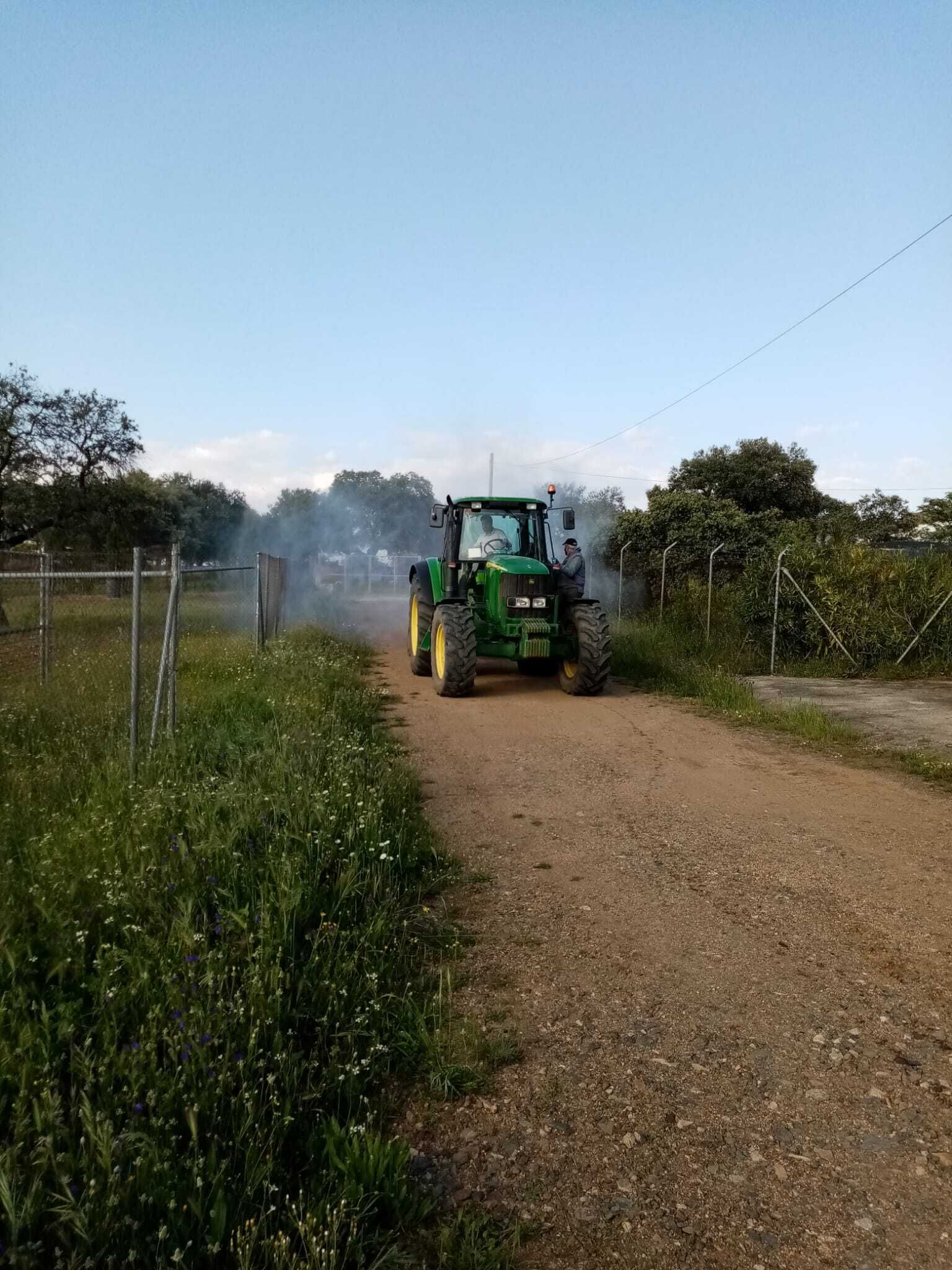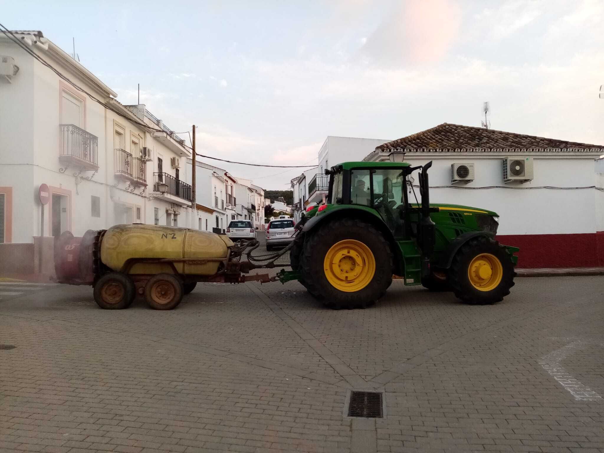 De este modo, se refuerzan las tareas de desinfección que a diario llevan a cabo los operarios municipales con la colaboración del vecino Miguel García Álvarez, de Agroforestal Sierra Norte, para las que ha puesto a disposición del Ayuntamiento su tractor y mano de obra, con la cesión por parte de las fincas Las Milaneras y El Hornillo de varios equipos atomizadores.