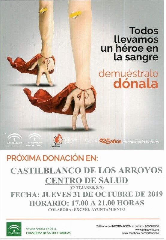 El mes de octubre llegará a su fin con una nueva campaña de donación de sangre. Una unidad móvil del Centro de Transfusión Sanguínea de Sevilla visitará la localidad el próximo jueves 31 de octubre.