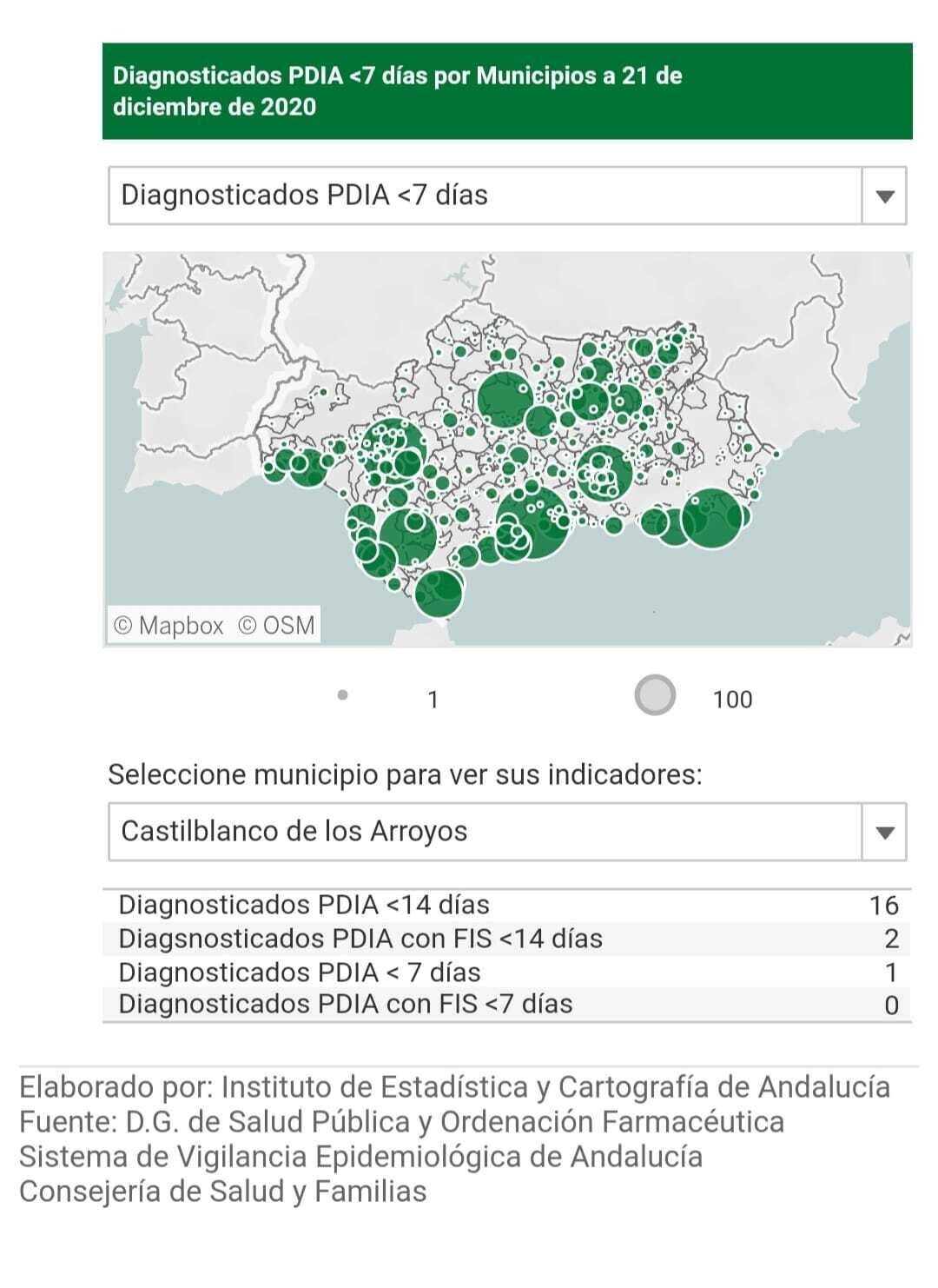 En tan sólo una semana Castilblanco ha pasado de mantener una tasa de 247 casos por cada 100.000 habitantes a 678,5 según los últimos datos publicados por la Consejería de Salud y Familias en el día de ayer